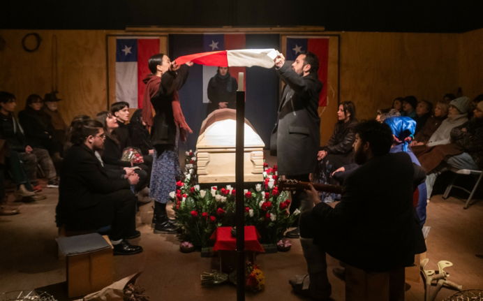 Funeral para un país es una experiencia teatral que nos invita a mirar a Chile desde sus ruinas y sus memorias. Un recorrido por los desarraigos, las identidades fragmentadas y los gestos cotidianos que, entre la nostalgia y la esperanza, construyen el retrato de un país que parece extinguirse y renacer al mismo tiempo.