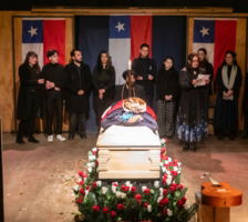 Funeral para un país es una experiencia teatral que nos invita a mirar a Chile desde sus ruinas y sus memorias. Un recorrido por los desarraigos, las identidades fragmentadas y los gestos cotidianos que, entre la nostalgia y la esperanza, construyen el retrato de un país que parece extinguirse y renacer al mismo tiempo.